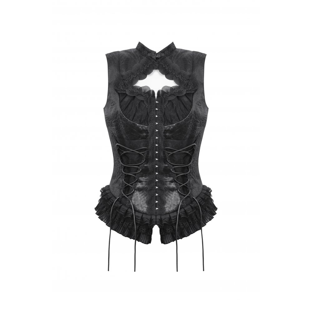Dark In Love Gothic Lace Trim Tie-up Top TW601
